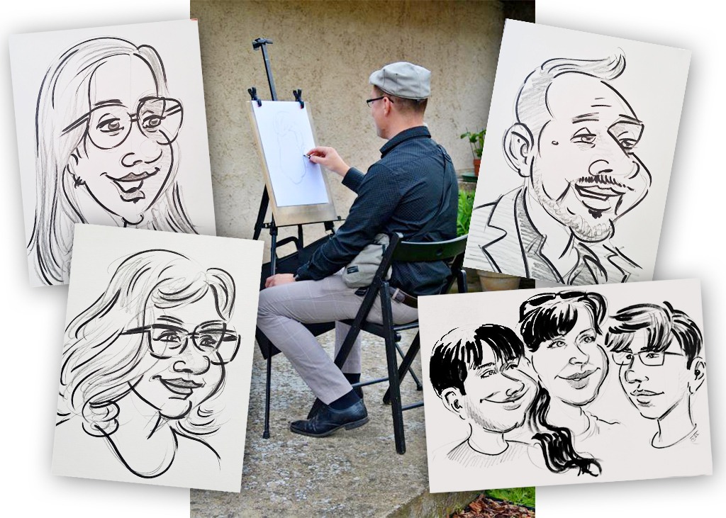 Jmenuji se Jirka a kreslím pro Vás karikatury od roku 2017. Na svatbách a večírcích po celém Česku, pro soukromé společnosti i firmy.